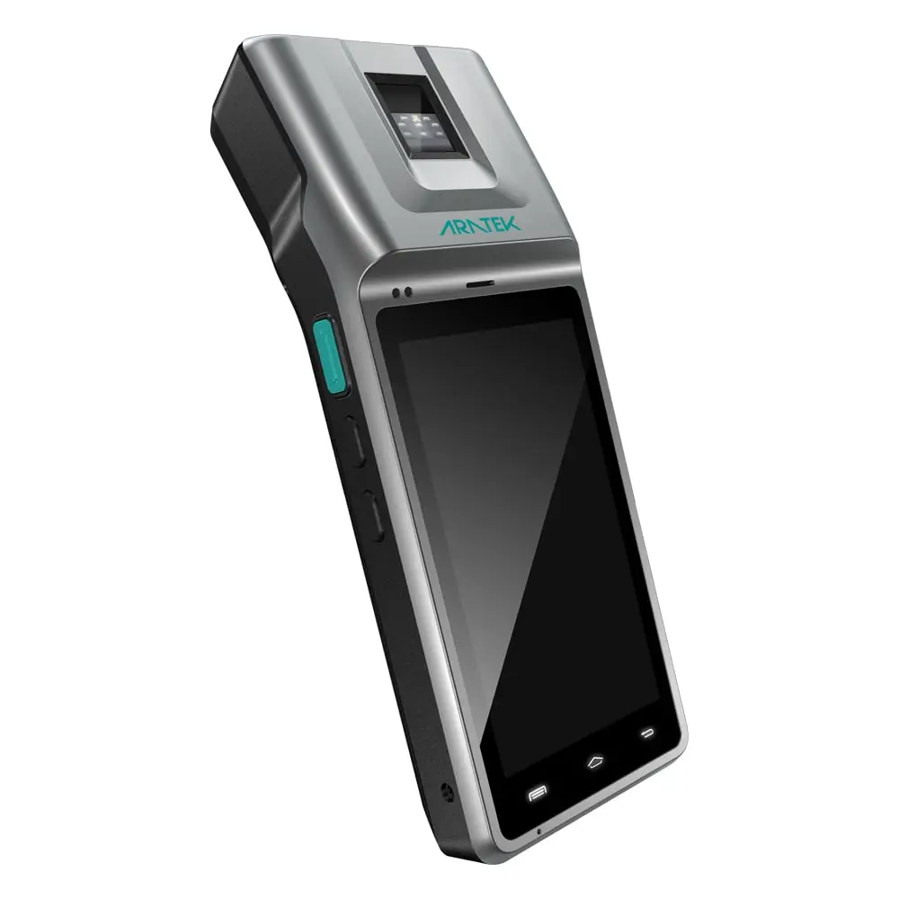 Thiết bị cầm tay 5″ với vân tay, nhận diện khuôn mặt, NFC/smart‑card, barcode và máy in tích hợp—giải pháp sinh trắc đa năng mọi lúc mọi nơi.